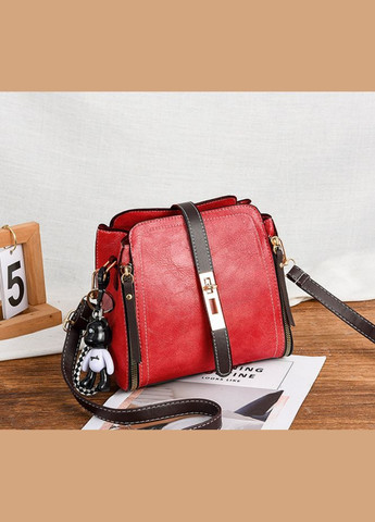 Женская мини сумка на плечо с брелком, экокожа, трапеция, красная (sku_1641Т)