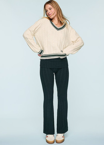 Женские штаны Victoria´s Secret Pink. Очень мягкие и комфортные вязаные брюки-клеш с широким подворачивающимся поясом. Вышитый логотип бренда на поясе сзади. Теплые и уютные брюки для обычных образов. Отличное качество.