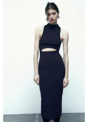 Платье средней длины с воротником хальтером и без рукавов. Вырез спереди. Очень хорошо тянется, ткань плотная. 🔸 Доступные размеры: M, L 🔸 Состав: 88% вискоза, 12% эластан Дополнительные замеры: Размер M (подойдет также на S): (НОГ — 33–46 см, НОТ — 30–40 см, НОБ — 37–50 см) - 37-50 см, ПОТ - 33-49 см, ПОБ - 41-63 см, Длина - 121 см)
