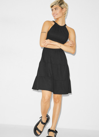 кешбэк от 7 ₴-51%790 ₴1 364 ₴672 ₴Акция:12:54:10Бесплатная доставка сC&A черное кэжуал платье а-силуэт однотонное оборки без рукава полиэстер - производство – ГерманияXLМатериал Полиэстер / Цвет Черный / Фасон А-силуэт / Длина изделия Мини / Стиль Кэжуал