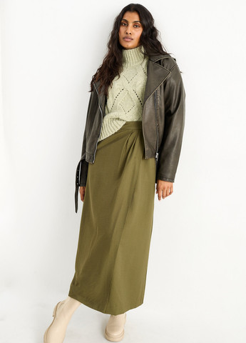 кешбэк от 6 ₴-51%650 ₴1 122 ₴553 ₴Акция:12:54:10Бесплатная доставка сC&A Оливковая (хаки) кэжуал юбка однотонная на запах складки гладкая вискоза производство - Германия36Цвет Хаки / Фасон На запах / Высота посадки Высокая талия / Длина изделия Макси / Материал Вискоза