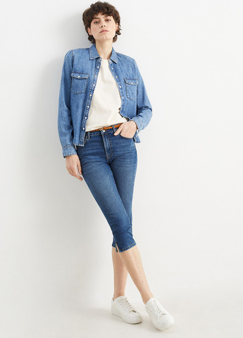 кешбэк от 3 ₴-51%370 ₴639 ₴315 ₴Акция:08:44:08Бесплатная доставка сC&A капри однотонные синие деним хлопок производство — Германия334•38•40•42Цвет Синий / Высота посадки Средняя талия / Узор Однотонный / Стиль Деним