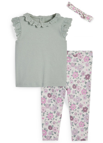 Этот детский наряд украшен мультяшным принтом в виде транспортных средств. В комплект входит лонгслив с длинными рукавами и брюки-комбинезон. В дизайне использована комбинированная цветовая палитра. Одежда имеет стандартный крой и изготовлена из слегка эластичной ткани.