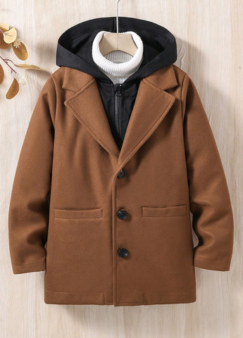 Это пальто – повседневный зимний вариант для молодых парней. У него кофейно-коричневый цвет, длинные рукава и однобортная планка. Дизайн спереди на пуговицах и карманах добавляет функциональные детали. Одежда имеет регулярную посадку и стандартную длину рукава, что делает ее пригодной для повседневной носки.
