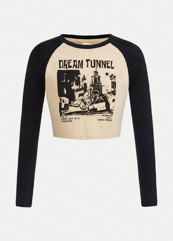 Реглан с длинным рукавом — легкий и стильный выбор для весны и осени. Буквенный принт и приталенный крой подчеркивают женственный силуэт, а эластичная ткань обеспечивает комфорт при ежедневной носке. Короткая длина делает его идеальным для создания модных повседневных образов.