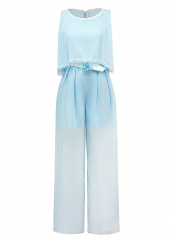 Элегантный комбинезон для девочек-подростков. Этот шифоновый комбинезон имеет круглый вырез и высокую талию. Комбинезон имеет стандартный крой и не тянется.