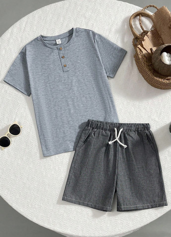 Комплект из 2 предметов для девочек-подростков SHEIN. В комплект входит однотонное укороченное болеро с короткими рукавами и платье без рукавов с геометрическим принтом. Изделия имеют стандартный крой. Детали включают пуговицу. Болеро имеет рукава-фонарики. Ткань представляет собой комбинацию неэластичных и высокоэластичных материалов.