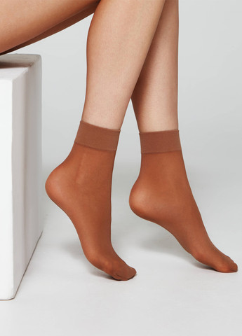 Прозрачные и тонкие носки для женщин. Они имеют среднюю высоту. Изготовлены из шелковистого и матового полиамида плотностью 20 den. Деликатные носки практически не ощутимы на ноге. Для еще большей практичности они имеют усиленный мысок и широкую, комфортную резинку, которая не передавливает ногу.