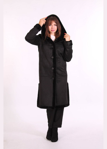 Дубленка длинная женская с капюшоном, сезон - зимний, цвет - черный , ткань - дубляж , , длина модели - длинная .