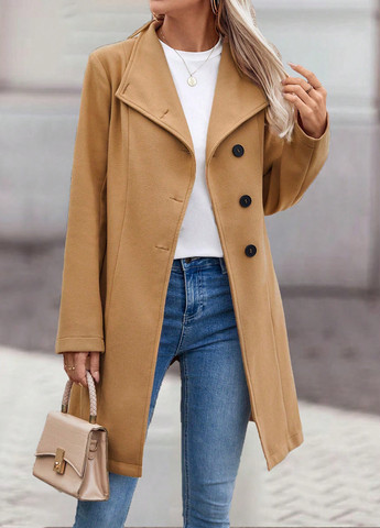 Женское однотонное пальто SHEIN LUNE на пуговицах спереди. Это повседневное пальто с вырезом и длинными рукавами. Оно предназначено для повседневной носки. Пальто имеет стандартный подол и однобортную планку. В пальто есть карманы, ткань слегка эластичная. Требует машинной стирки или профессиональной химчистки.