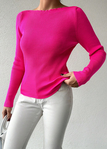 Изделие представляет собой розовый свитер, имеет вырез лодочкой и длинные рукава, облегающий крой и изготовлен из эластичной ткани.
