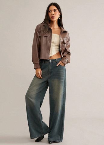 Куртка из искусственной кожи коричневого цвета. Эта куртка со спущенным плечом и длинными рукавами изготовлена из 100% искусственной кожи. Куртка имеет стандартный подол и свободный крой. Есть ложные карманы. Уход: только влажная чистка.