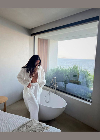 Костюм Ткань- трехнитка на флисе. Ткань хорошо тянется на 4 см. Свитшот свободного кроя, по низу и манжеты -декорированы эксклюзивной лентой, брюки с карманами, снизу на манжете. Невероятно комфортный, удобный, теплый костюм согреет в холодное время года. Свитшот 50-52 - ог-116, от-116, об-110, длина свитшота -64, длина рукава-59. 54-56- ог-124, от-124, об-118, длина-66, дл. р-59 см. 58-60- ог-132, от -132, об-126, длина-66, дл.р.-59 см. 62-64 - ог-140, от-140, об-134, длина-66, дл.р.-59 см. Брюки с карманами, снизу на манжете, высокая посадка на резинке. 50-52 – от-104, обхват бедер-108, длина –106 см. 54-56-от-112, обб-116, длина-107 см. 58-60-от-120, обб -124, длина-107 см. 62-64-от-130, обб- 134, дл бр- 107 см.