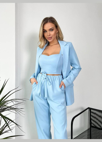 Цвет Голубой / Стиль Деловой / Узор Однотонный / Материал Костюмная