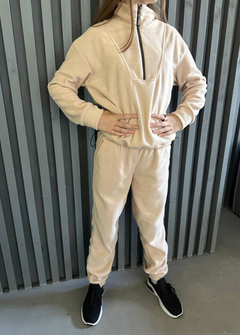 Кофта на молнии позволяет носить ее свободно или подвернуть, подчеркивая талию. Широкие штаны палаццо с завышенной талией обеспечивают максимальный комфорт и свободу движений. Топ дополняет комплект, создавая завершенный стильный образ. Костюм идеален для прогулок, путешествий и создания современного удобного лука.