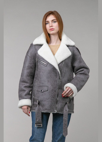 Дубленка-авиатор серого цвета и эко-овчины белого цвета. Длина 70 см.