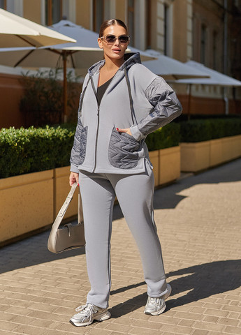 Женский спортивный костюм – современный вариант для тех, кто ценит уют и стиль в повседневной жизни. Комплект состоит из укороченной кофты на молнии с капюшоном и свободных брюк на эластичном поясе. Благодаря такому крою костюм выглядит стильно, подчеркивает фигуру и обеспечивает полную свободу движений. Кофта имеет удобный капюшон, длинные рукава с манжетами и резинку внизу, красиво подчеркивающую линию талии. Брюки – прямого фасона, с высокой посадкой, на поясе с кулиской для регулировки объема. Такая модель подходит для прогулок, путешествий, домашнего отдыха или активного времяпрепровождения. Материал мягкий, тёплый и приятный к телу. Он хорошо держит форму, легко стирается и не теряет своего вида даже после длительного ношения. Это практический выбор для любого времени года. Преимущества модели: удобный фасон с капюшоном и молнией; укороченная кофта с акцентом на талии; брюки с кулиской и высокой посадкой; мягкий, теплый и износостойкий материал; универсальность в сочетании с разной обувью и верхней одеждой. Такой костюм станет любимой базовой вещью гардероба, ведь сочетает комфорт, функциональность и трендовый дизайн. Длина кофты 42см, брюк 104см.
