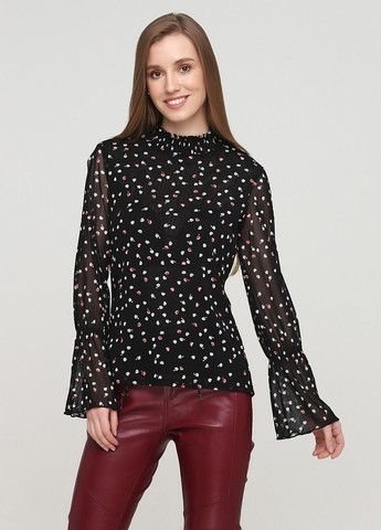 Блуза из тканого материала с V-образным вырезом, завязками сверху, кокеткой со складками сзади, длинными рукавами и манжетами с пуговицами.