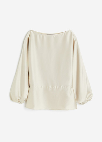 Короткое платье из мягко драпированного атласа, украшенное перламутровыми пластиковыми бусинами. Круглый вырез горловины спереди, глубокий V-образный вырез сзади, формирующие вытачки на талии и скрытая молния сзади на крючке. Плечевые накладки, плавно спущенные плечи и удлиненные рукава с разрезами на манжетах. На подкладке.