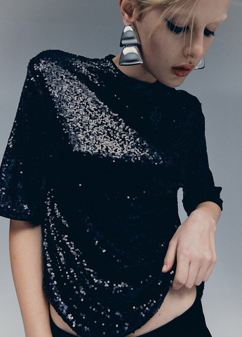 Состав 80% полиамид, 13% эластан, 7% металлическая нить / Материал Джерси, Полиамид / Фактура Люрекс / Бренд H&M / Сезонность Демисезон / Застежка На крючках / Принадлежность Женщинам / Страна бренда Швеция / Тип карманов Без карманов / Цвет Черный