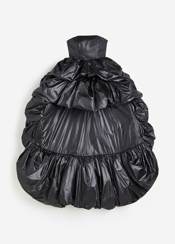 Коллекция Studio. Черное как смолое вечернее платье из тканой ткани с блеском и эффектным силуэтом, привлекающим внимание. Модель без рукавов с корсетным лифом с косточками для поддержки. Скрытая молния с одной стороны и пояс из грогрена с застежкой на крючки. Подкладка из хлопчатобумажной ткани. Объемная юбка со сложенными воланами, наполненная тюлем для пышного образа. Жесткая нижняя юбка для подчеркивания объема и стиля.