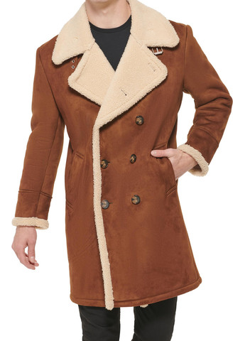 Мужское пальто Guess. Стильное мужское пальто GUESS, выполненное из экозамши с подкладкой из шерпы. Отложной английский воротник. Воротник с ремешком. Застегивается на пуговицы. Два боковых кармана. Сзади разрез для свободы движения. Сзади металлический логотип бренда. Отличное качество.