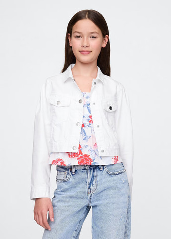 Джинсовая куртка GAP. Отложной воротник. Застежка на пуговицы спереди. Длинные рукава с манжетами на пуговицах. Два нагрудных кармана с клапанами на пуговицах. Укороченная длина. Отличное качество.