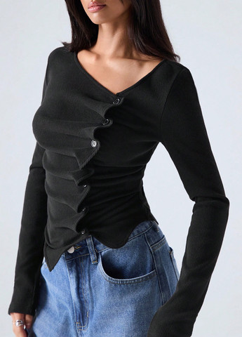 кешбэк от 8 ₴-62%807 ₴2 016 ₴767 ₴Акция:1 день, 14:46:48Бесплатная доставка сSHEIN кофта однотонный черный кэжуал полиэстер производство - КитайMЦвет Черный / Узор Однотонный / Фактура В рубчик / Застежка На пуговицах / Сезонность Демисезон / Материал Полиэстер / Состав 93% полиэстер, 7% эластан