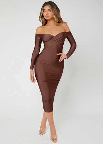 кешбэк от 176 ₴-62%880 ₴2 200 ₴836 ₴Акция:2 дня, 08:30:05Бесплатная доставка сSHEIN коричневое коктейльное платье с открытыми плечами, силуэтная однотонное складки с длинным рукавом полиамид - производство – КитайLМатериал Полиамид / Цвет Коричневый / Фасон С открытыми плечами, Силуэтная / Длина изделия Миди и ниже колена / Стиль Коктейльный