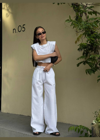 🔹 Брюки прямого кроя с эластичным поясом и боковыми лампасами из мягкой двунитки выглядят эффектно и вытягивают силуэт.