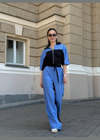 Цвет Синий / Стиль Спортивный, Повседневный, Кэжуал / Материал Лен, Двунитка