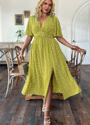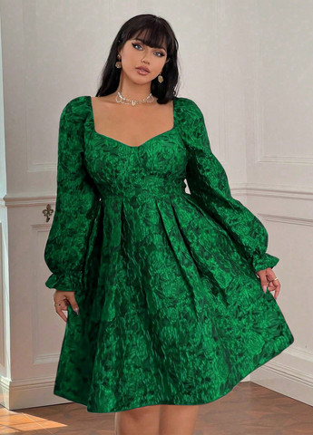 Это платье plus size с квадратным вырезом и длинными расклешенными рукавами. Жаккардовая ткань включает плиссированный цветочный рисунок. Подходит для особых случаев. Это платье обычного кроя с оборками и сборкой. Подол расклешенный, а талия завышена. Ткань не растягивается.