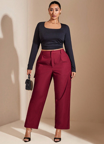 Цвет Бордовый / Материал Вискоза / Фасон Прямые, Карго / Высота посадки Высокая талия / Узор Однотонный