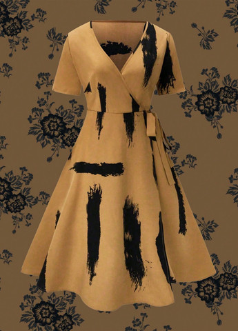 Повседневное платье на запах имеет пояс с завышенной талией и расклешенный край.