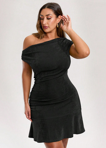 Женское платье с открытыми плечами SHEIN BAE идеально подходит для особых случаев, таких как День святого Валентина или празднование Нового года, а также в качестве платья для гостей на свадьбе. Имеет облегающий крой. Платье имеет застежку-молнию и разрез на бедре. Оно имеет обычные рукава и слегка эластичную ткань. Подол сформирован с разрезом, а вырез спускается с плеча. Платье имеет высокую линию талии и не имеет карманов.