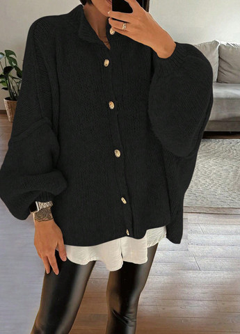 Этот кардиган plus size обеспечивает свободную посадку. Он изготовлен из высокоэластичной ткани для комфорта. Кардиган имеет воротник-стойку и рукава с приспущенным плечом. Он включает пуговицы для застежки и стандартную форму подола.