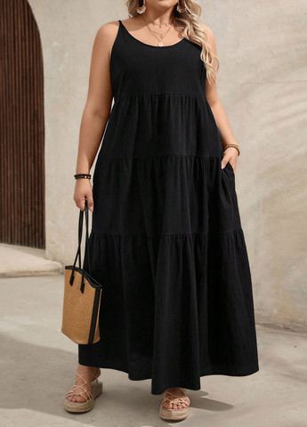 Это платье SHEIN VCAY предлагает повседневный стиль. Оно имеет длинную длину и оборчатый подол. Платье включает карманы и овальный вырез. Оно имеет высокую талию и стандартный крой. Ткань неэластичная и многослойная.