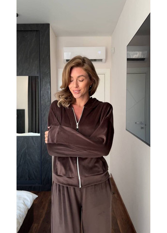 р1541.750 Этот костюм выполнен из велюрового материала, дающего ощущение мягкости и комфорта. Комплект состоит из кофты с капюшоном и застежкой на молнии, что позволяет легко регулировать посадку. Брюки с эластичным поясом имеют свободный крой, что обеспечивает комфорт и свободу движений. Костюм идеально подходит для отдыха дома или прогулок, придавая стильный и расслабленный вид. На нашем сайте заказы обрабатываются автоматически без консультаций. После приема заказа система автоматически проверяет наличие товара, обрабатывает платеж и данные по доставке. Внимательно заполняйте адрес доставки.