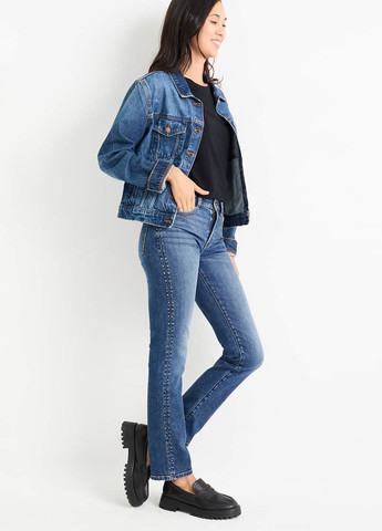 Джинсы прямого кроя из эластичного денима и аппликациями из страз по бокам, средняя посадка. Ширина подола примерно 38 см для размера 42, внутренняя длина штанины примерно 80 см в размере 42. Ширина подола примерно 34 см для размера 36, внутренняя длина штанины примерно 79 см в размере 36.