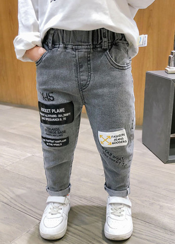 Детские джинсы для мальчиков серого цвета. Красиво и модно выглядят, стильные и удобные. Два кармана спереди, два кармана сзади. Пояс на резинке. Размер 92: длина 52см, ширина в бедрах 32см, шаговый шов 31см. Размер 98: длина 57см, ширина в бедрах 36см, шаговый шов 35см. Размер 104-110: длина 63см, ширина в бедрах 36см, шаговый шов 40см. Размер 116-122: длина 69см, ширина в бедрах 40см, шаговый шов 45см.