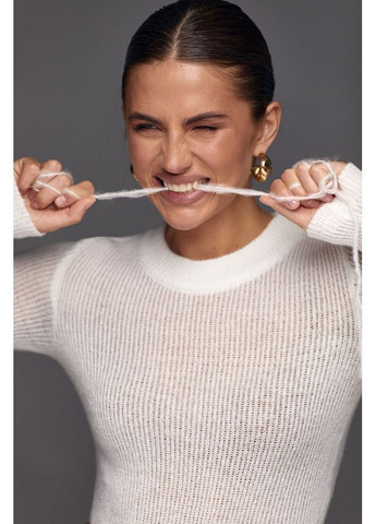 Легкий и воздушный лонгслив из натуральной шерстяной пряжи с включением мохера. Прилегающий силуэт, гладкое переплетение, ажурная полупрозрачная вязка. Длина 56 – 60 см (+- 2 см) Ширина в спокойном нерастянутом состоянии 32 – 36 см., в растянутом состоянии 44 – 48 см. Длина рукава 64 – 63 см.