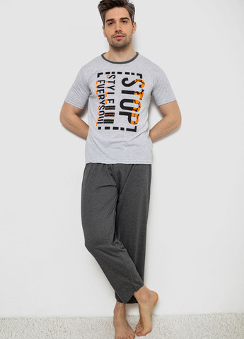 Цвет Серый / Материал Хлопок, Трикотаж / Узор Надпись / Фасон рукава Вшитый