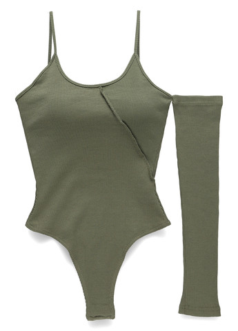 Цвет Хаки / Состав 50% полиэстер, 45% хлопок, 5% эластан / Узор Однотонный / Фактура В рубчик