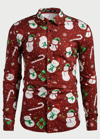 Мужская тканая рубашка с длинным рукавом Manfinity VCAY. Эта рубашка украшена праздничным принтом по всей поверхности. Классический крой и застёжка на пуговицы спереди. Рубашка изготовлена из смеси полиэстера и эластана. Вырез воротника – рубашечный, рукава – стандартные. Стирать в стиральной машине с мягким моющим средством; не подвергать химчистке.