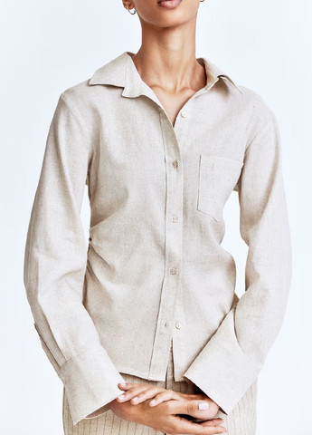 Рубашка из лёгкой, полупрозрачной тканой ткани с полосатым узором. Накладной нагрудный карман, широкие регулируемые манжеты рукавов на 1 пуговице и скругленный верхний/нижний раздел. Длина по спинке примерно 75 см, длина рукава примерно 57 см в размере S; длина по спинке примерно 76 см, длина рукава примерно 59 см в размере L.