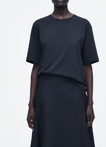 Команда отдела женской моды COS каждый сезон работает над совершенствованием наших футболок. Эта модель свободного кроя выполнена из легкого органического хлопкового трикотажа плотностью 160 г/м² и имеет ребристый круглый вырез и короткие рукава. Свободный крой, органический хлопок плотностью 160 г/м², выращенный из семян без ГМО, без использования химических удобрений и пестицидов. Верхний материал: 100% органический хлопок. Детали не включены/Машинная стирка Длина по спинке у размера S = 64 см/На модели размер S