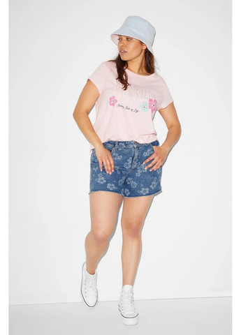 Эластичные джинсовые шорты от CLOCKHOUSE с принтом по всей поверхности, эффектом потертости и открытым краем.