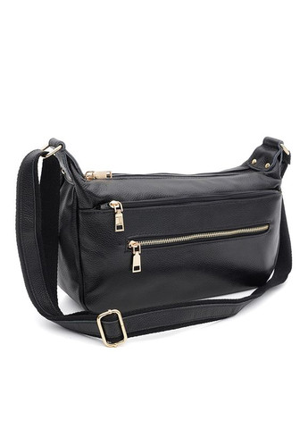 Женская кожаная сумка закрывается на молнию. Два основных отделения на молниях. Внутри имеется 2 кармана, один из которых на молнии. С наружней стороны 2 кармана на молнии. Подкладка текстиль. Несъемный ремень-текстиль+кожа регулируется по длине.