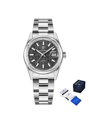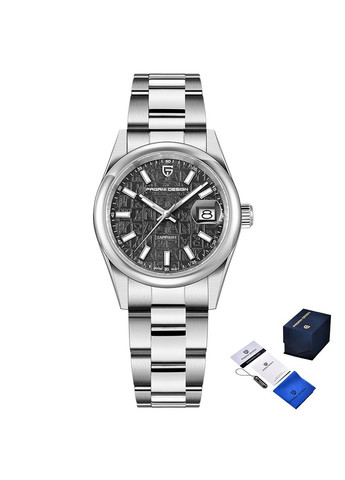 Часы Pagani Design PD-1794L Silver-Black Представляем вашему вниманию стильные женские часы Pagani Design PD-1794L, идеально сочетающие классический и современный дизайн. Эти часы с диаметром корпуса 35 мм изготовлены из стали, что придает им отличную выносливость и элегантный вид. Серебристый корпус в дуэте с таким же цветом ремешка делает его универсальным дополнением к любому наряду. Благодаря механическому механизму с автоподзаводом, вы всегда будете ко времени, а сапфировое стекло обеспечит высокую стойкость к царапинам. Часы имеют водонепроницаемость до 50 м, что позволяет носить его даже во влажных условиях. Люминесцентные стрелки и индикаторы обеспечивают легкость чтения в любое время суток, а стрелочный циферблат с индексами придает дополнительный шарм. Гарантия на часы – 12 месяцев, что подтверждает его качество и надежность. Pagani Design PD-1794L – это не просто часы, а воплощение стиля и функциональности для современной женщины.