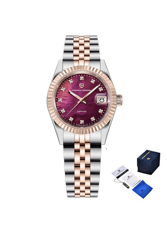 Описание для часов Pagani Design PD-1794L Silver-Rose Gold-Red: Оставайтесь стильными с женскими часами Pagani Design PD-1794L! Этот изысканный аксессуар сочетает классический стиль и современные технологии. Корпус диаметром 35 мм изготовлен из стали серебристого цвета, что придает ему элегантный вид, а сапфировое стекло обеспечивает защиту от царапин. Часы имеют механический механизм с автоподзаводом, что гарантирует точность и надежность. Водонепроницаемость до 50 м позволяет не опасаться воды в повседневном использовании. Браслет из комбинированного материала придает не только стиль, но и удобство, а его длина составляет 20 мм. Эти часы подходят для повседневного использования (casual) и праздничных событий, что делает их идеальным дополнением к любому наряду. Ваша утонченность будет подчеркнута благодаря индикации часов, минут и секунд, а также люминесцентным элементам, придающим особое обаяние. С брендом Pagani Design вы получаете не только стильный, но и надежный аксессуар, ведь каждые часы имеют 12-месячную гарантию. Выберите свой идеальный стиль вместе с Pagani Design PD-1794L!